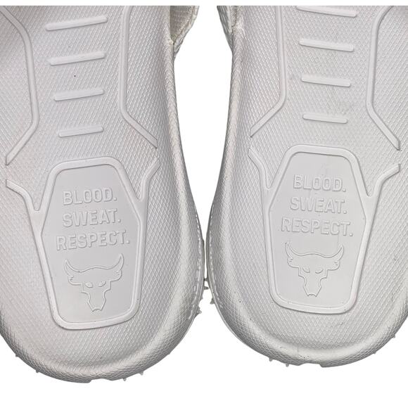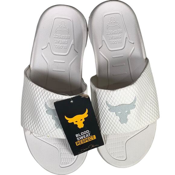 Comfortable white slide sandals. Textured strap for secure fit. Durable sole for everyday wear.
