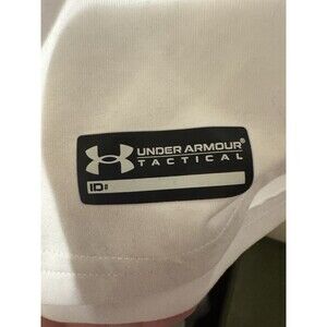 The Under Armour White Tactical T-shirt in size XL is a versatile and comfortable activewear top perfect for summer and spring seasons. Made with lightweight, breathable, and moisture-wicking fabric, this pullover t-shirt features a crew neck and short sleeves for ease of movement during activities like gym training, cross-training, and running. The solid white color with the Under Armour logo adds a stylish touch to this relaxed fit shirt, making it a practical and fashionable choice for men looking for quality athletic wear.