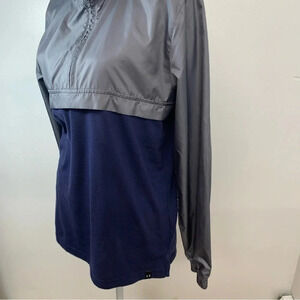Under Armour Windbreaker Woman Small Loose 1/4 Zip Hood Long Sleeve Blue Gray