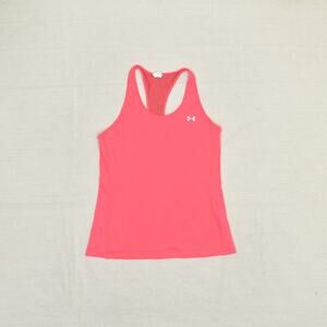 This Under Armour Women's Tank Top in size S is a solid pink fitted top perfect for gym workout or casual wear. The sleeveless design with a crew neck and racerback strap offers comfort and style. Made from polyester material, this tank is machine washable, easy to care for. Ideal for summer and spring seasons, this basic tank from the renowned brand Under Armour is a versatile addition to any wardrobe.