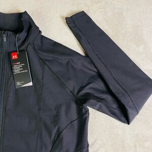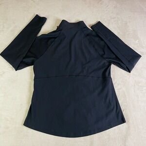 Sleek black jacket. Full zip front. High collar. Lightweight and comfortable. Ideal for active wear. Fits more like a medium/large.