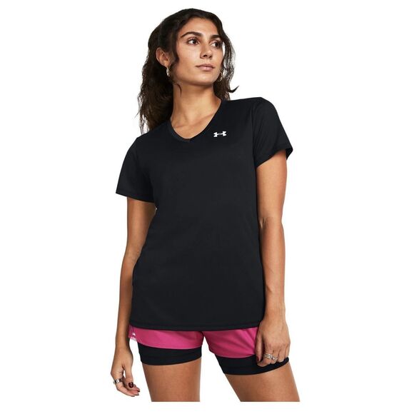 Under Armour Women's Black Loose Fit Heat Gear V-Neck Short Sleeve T-Shirt Large