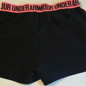 Under Armour Women's Black and Neon Pink Athletic Shorts