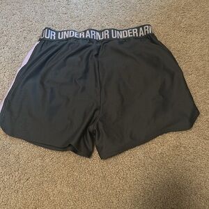 Experience comfort with Under Armour's athletic shorts. Black with purple panels. Ideal for workouts.