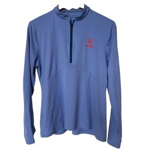 Under Armour Women's Blue Quarter-Zip Pullover Shirt XL Topgolf Logo Stretch