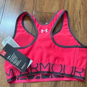 Bold pink sports bra with supportive fit. Features removable cups and racerback design. Ideal for workouts.