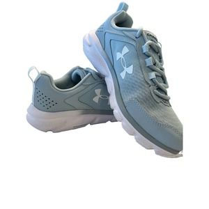 Elevate your running experience with the Under Armour Women's Charged Assert 9 Running Shoe in Breaker Blue, Size 9. Weighing just 8.15 oz., these shoes are designed for optimal performance. The durable leather overlays provide stability and lock in your midfoot, ensuring a secure fit. With an offset of 10mm, the solid rubber outsole covers high-impact zones for greater durability without added weight. The Charged Cushioning midsole features compression-molded foam, offering ultimate responsiveness and durability. The standard tie lace type ensures a snug fit, while the EVA sockliner provides soft, step-in comfort. The lightweight mesh upper with a 3-color digital print delivers complete breathability, making these shoes ideal for neutral runners who seek a balance of flexibility and cushioning. Step into comfort and style with these new, tag-less, and box-less running shoes.