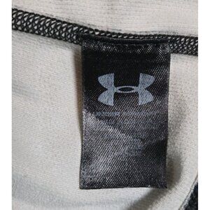 The Under Armour Women's Cold Gear Long Sleeve Fitted Shirt is a sleek and stylish activewear top perfect for running and jogging. This shirt features a black and gray striped geometric pattern, long sleeves, a crew neck, and a pullover closure for easy wear. Made from a polyester blend fabric with a medium wash, this shirt offers stretch for a comfortable fit. The athletic fit and compression areas in the arms and body make it ideal for active occasions, while the machine washable material ensures easy care. Perfect for women looking for a high-performance, stylish top to add to their activewear collection.