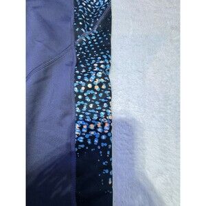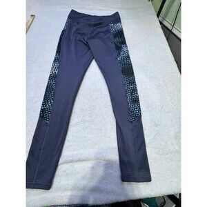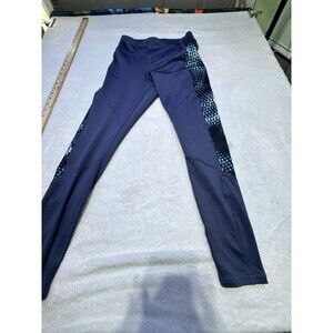 Under Armour Womens Compression Full Length Leggings Pocket Sz M Navy Blue Geo