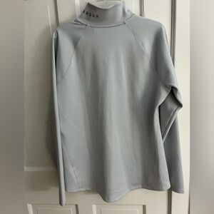 Under Armour Written on Mock neck in a subtle silver metallic.