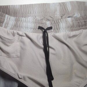 These gray athletic shorts by Under Armour with lime green trim are perfect for gym & training as well as running & jogging. The drawstring closure ensures a secure fit, while the elastic waist provides comfort during your workout. The lightweight and breathable fabric is ideal for summer and spring activities. Featuring a lined design, these shorts are both stylish and functional. The size is labeled as unknown but the waist measures at 30 inches. The athletic fit and performance features make it an excellent choice for any sports enthusiast.