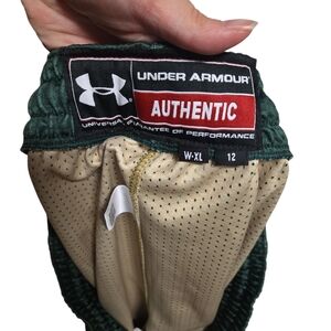 Under Armour Womens Green Basketball Shorts with Gold Stripes