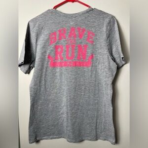 "Run" and "Brave the Run" on the front and back of the shirt in a distressed print!