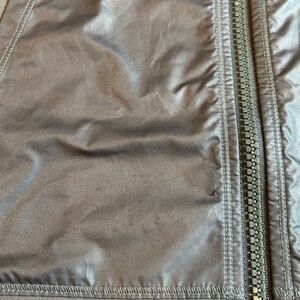 Good pre-owned condition with no tears noted. A few spots noted on the pocket and sleeve, as shown in photos. Fits true to size. See photos for approximate measurements.