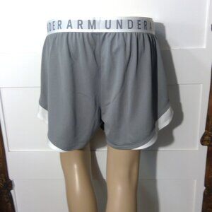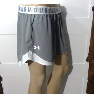Under Armour Women's Grey and White Athletic Shorts (Size LG)