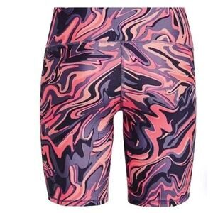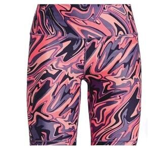 Elevate your workout wardrobe with these Under Armour Women's High Rise Bike Shorts in XS size. The camouflaged pattern and pink color add a touch of style to your activewear collection. The shorts feature an elastic waist and compression to provide maximum comfort and support during various physical activities like cycling, yoga, and running.