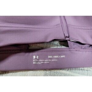 Under Armour high-support sports bra in mauve/purple, size 36C. Designed for maximum support during high-impact workouts like running, HIIT, or training.