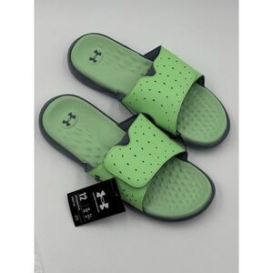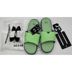Under Armour Women's Ignite Pro Slides, Matrix Green/Gravel/Gray - Size 12 US