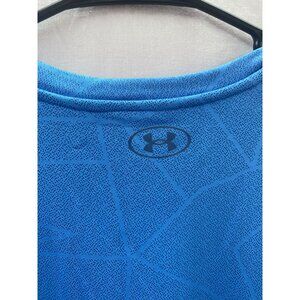 Under Armour Women's Large Blue with Gray Short Sleeve Logo Heat Gear Shirt.
