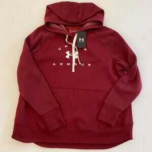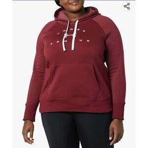 Under Armour Womens League Red White Rival Fleece Loose Pullover Hoodie 1X NWT