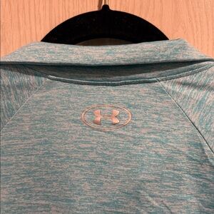 Stay comfortable and stylish with this Under Armour women’s quarter-zip pullover. Made with lightweight, breathable fabric, this top is perfect for workouts, running, or casual wear. The turquoise/blue heathered design features the iconic UA logo on the chest and a functional front zipper for adjustable coverage.