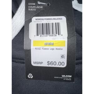Elevate your activewear game with this Under Armour Women's Loose Rival Fleece Logo Hoodie in size M and black color. The pullover style hoodie is made with high-quality fleece fabric to keep you warm and comfortable during your workout routine. It features the iconic Under Armour logo as an accent, adding a touch of style to your sportswear.