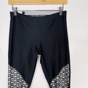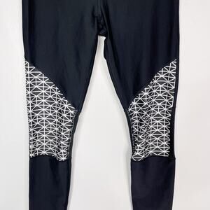 Under Armour Womens Medium M Black White Geometric Print Colorblock Leggings