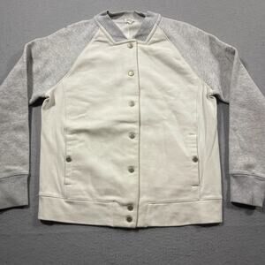 Under Armour Womens Medium Varsity Fleece Bomber Sweatshirt Ivory Gray