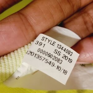 Ready for your next workout? Grab this neon yellow/light green, short sleeve sweatshirt by Under Armour, size medium. Cotton and polyester blend. logo on bottom right front of sweatshirt; cut-out in the back. Excellent pre-owned condition; no flaws.