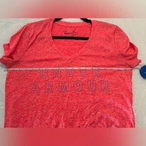 Under Armour Women’s Orange Heatgear Logo Loose Fit T-shirt Top, Medium
