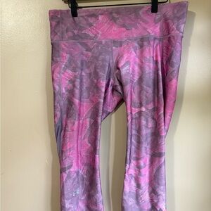 Bright and comfy cropped leggings with a pink and lavender pattern. Size XL in great condition