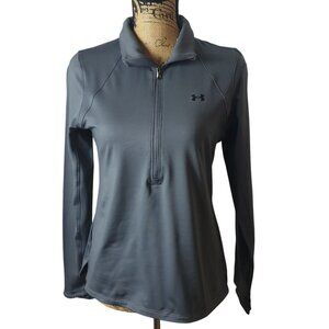 women's sportswear, long sleeve top, half-zip shirt, athletic clothing, tech sports, Thermal, workout gear, gym apparel, activewear, casual wear, comfortable top, breathable fabric, gray pullover, polyester shirt, Under Armour pullover
