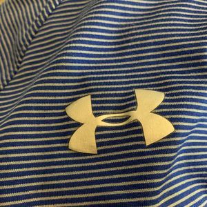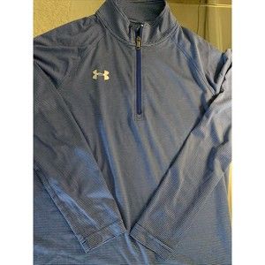 Under Armour Loose Activewear Top Heat Gear Pipeline Volleyball Club 1/4 Zip Pullover Mock Neck Blue & White Stripe, Long Sleeve, Womens Small