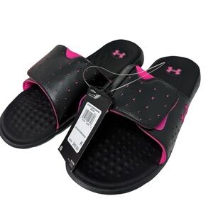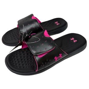 Under Armour Women’s Size 9 Ignite VII Sandals slip on Comfort Black Pink NWT
