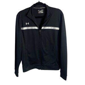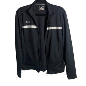 Under Armour Women's Size M Knit Warm Up Full Zip Sweatshirt Black White Loose