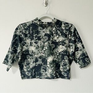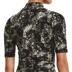 Brand new with tags Under Armour high neck half sleeve athletic crop top in black and tan/green print. Size XL. Mock neck. Stretch. Retailed for $50. NWT- writing on interior (see photo).