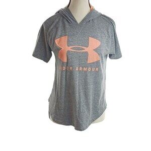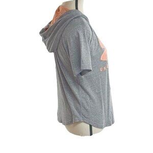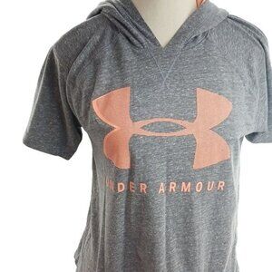 Under Armour Womens Small Gray Short Sleeve Hoodie Logo Athletic Shirt