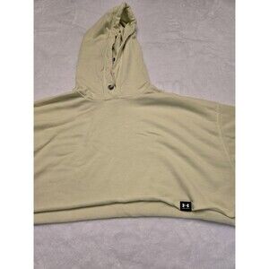 This Under Armour Women's Small Yellow Cropped Hoodie/Hooded Sweatshirt in a loose fit is the perfect activewear piece for the winter, fall, and spring seasons. The long sleeve pullover hoodie features a solid yellow color with the Under Armour logo accent, making it a stylish choice for gym and training activities. The relaxed fit and hooded design ensure comfort and functionality, while the machine washable fabric makes for easy care. Perfect for those who enjoy sports-themed activewear, this hoodie is a versatile and practical addition to any woman's wardrobe.