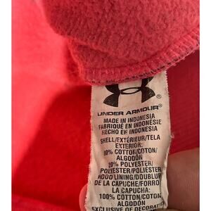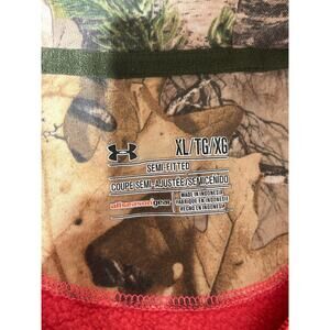 This Under Armour Women's XL Sweatshirt is a stylish and functional addition to your activewear collection. The pink camo pattern adds a colorful touch, while the full zip design and hood make it easy to layer and stay comfortable during your workouts. Made with machine washable fabric and athletic fit, this hoodie features pockets for added convenience. Perfect for all season wear, this semi-fitted sweatshirt is a versatile and high-quality choice for active women on the go.
