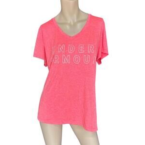 Under Armour Womens T Shirt Size XL Orange V Neck Tee Workout Gym Running