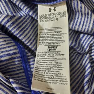 Under Armour Womens Blue and White Stripe Top Golf Heat Gear Collared Fitted Polo Size Large NWT, Please See Measurements For Best Fit,