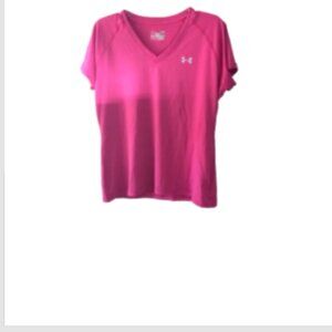 Under Armour Women's Top Sz L Pink Loose V-Neck Raglan Short Sleeve Athletic Tee
