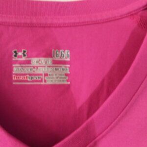 Under Armour women’s top, pink athletic tee, loose fit workout shirt, raglan short sleeve, large UA performance top, gym yoga running shirt