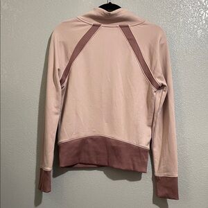 Chic and comfortable two-tone pink hoodie. Ideal for workouts or casual wear. Features a zip-up front and drawstring hood.