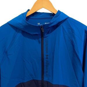 Under Armour Womens Two-tone Colorblock Woven Full Zip Hooded Jacket Blue Small NWT