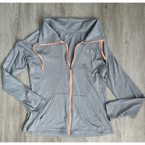 Elevate your activewear game with this EUC Under Armour Women's UA Tech Twist Full Zip Top. The lightweight jacket is perfect for any occasion, whether you're hitting the gym or running errands. The 100% polyester outer shell material ensures durability and comfort, while the gray color and basic jacket style adds a touch of sophistication.