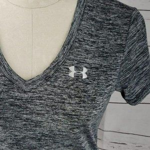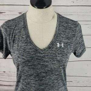 Under Armour Women's V Neck Heather Grey Short Sleeve Shirt Size Small