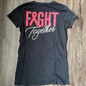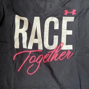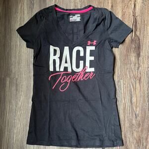 Under Armour Women's size XS breast cancer awareness v-neck “Race together Fight together” graphic T-shirt. In excellent condition from a smoke free home.