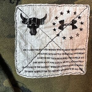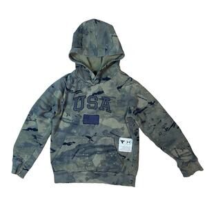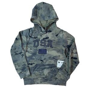 Under Armour X Project Rock Hoodie Loose Veteran's Day USA Camo Green Boys Small
