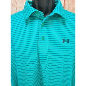 Under Armour XL Loose Fit HeatGear Polo Blue Striped Mens Golf Top